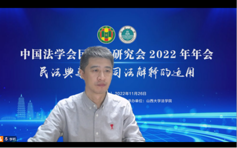 2022年11月26日,由中国法学会民法学研究会主办,山西大学bat365在线官网登录入口承办的中国法学会民法学研究会2022年年会暨“民法典与相关司法解释的适用”学术研讨会召开。本次会议采取线上会议形式,分为大会主题发言会议和七个分会场的分组讨论会议,来自全国高校以及科研机构的民法学专家学者参会,在线观看人数高达5.5万人次。bat365在线官网登录入口民商法学科负责人郭洁教授、副院长李岩教授、刘宛婷讲师、刘岳讲师受邀参加。