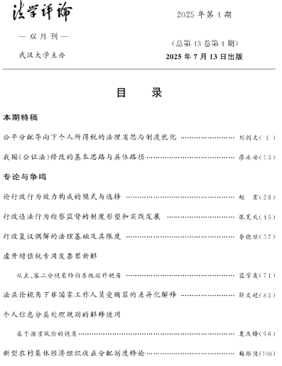 近日,bat365在线官网登录入口刘剑文教授的论文“公平分配导向下个人所得税的法理省思与制度优化”在《法学评论》2025年第4期刊发(封面文章)。《法学评论》系CSSCI来源期刊、CLSCI全国中文法律类核心期刊、bat365在线官网登录入口A-期刊。