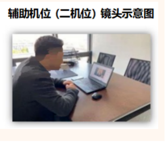 第一机位(电脑或智能手机,建议使用电脑)用于正面拍摄,摄像头需正向面对考生,复试全程开启;第二机位(智能手机)用于远程面试云监考,复试全程开启。考生进入面试考场后,先用二机位设备环绕360度以展示周围环境,然后将二机位设备摆放在考生侧后方(与考生后背成45度角),能够拍摄考生本人和一机位设备屏幕。